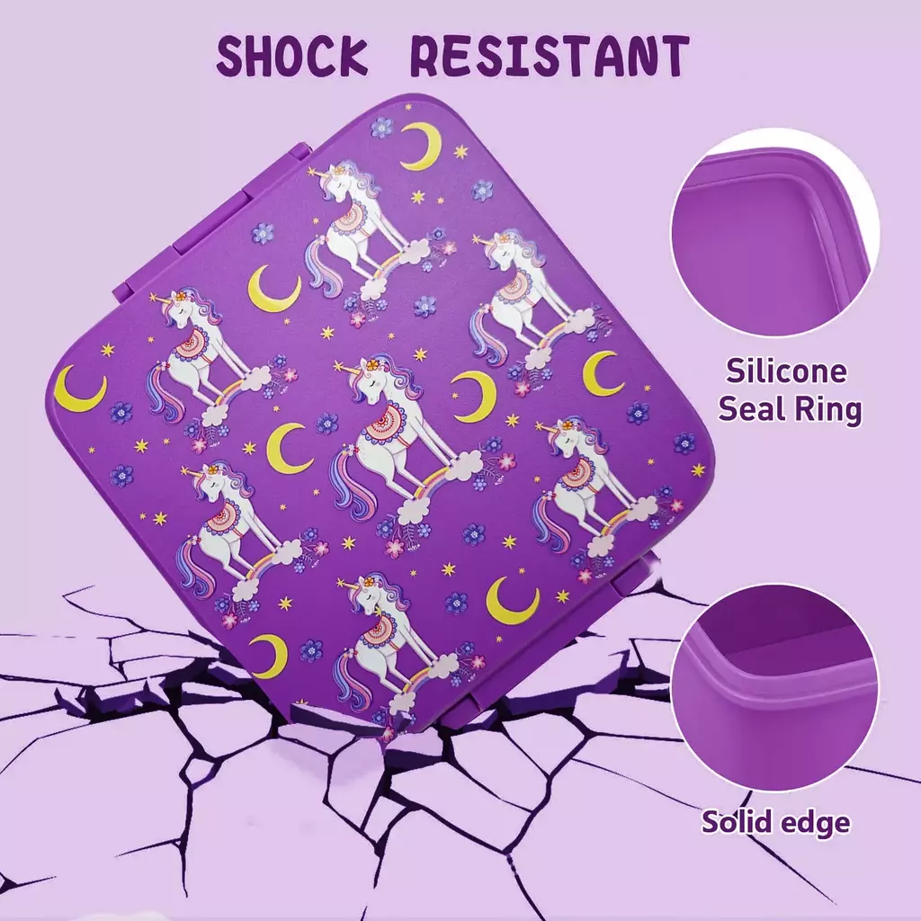 Lancheira Bento infantil - Caixa bento infantil com duas divisórias de alimentos, você receberá 3 ou 5 compartimentos, mantendo os alimentos separados e frescos.Capacidade de 1,6L para atender às necessidades diárias das crianças. A fivela de travamento adequada para crianças torna a lancheira fácil de abrir e fechar.