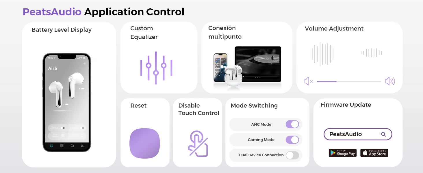 Ative a função de conexão multiponto no aplicativo PeatsAudio antes de estar pronto para usá-lo.(Desligado padrão, pode ser ativado através do APP)