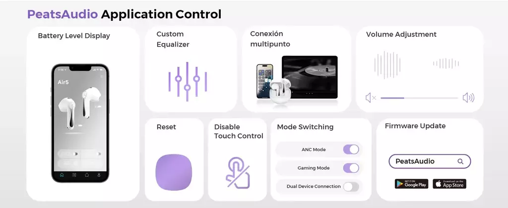 A configuração padrão do produto é o modo de canal auditivo 2 (médio), que se adapta à maioria das pessoas.No entanto, para evitar possíveis incompatibilidades durante o primeiro uso, o que pode causar sons anormais, como assobio ou ruído, quando o ANC está ligado, os clientes que enfrentam esses problemas podem baixar o aplicativo "PeatsAudio" para selecionar o modelo do canal auditivo que melhor se adapta a eles.Como alternativa, girar suavemente o fone de ouvido para encontrar o ângulo ideal pode resolver esses problemas.(Por favor, não empurre os fones de ouvido com força para dentro dos ouvidos, pois bloquear os orifícios de ventilação pode causar sons mais fortes.)