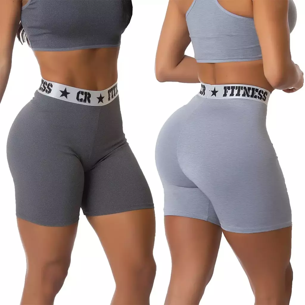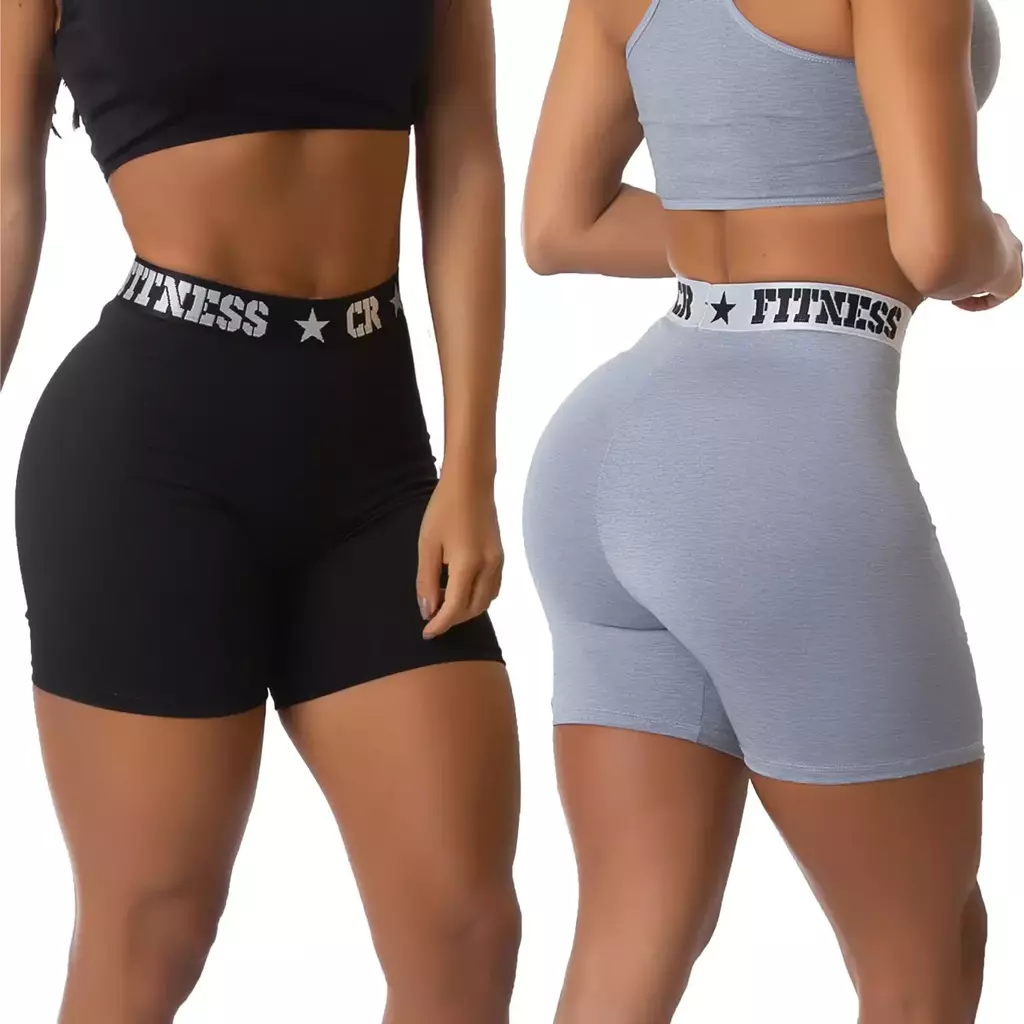 Kit 2 Shorts Elástico Exposto Academia Cintura Alta