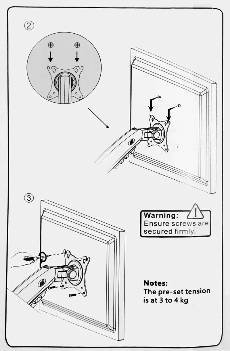 Carga de suporte de 4,4 a 19,8 libras (2-9 kg) (por favor, certifique-se de que sua tela esteja dentro dessa faixa ou que a mola a gás da montagem não funcionasse)