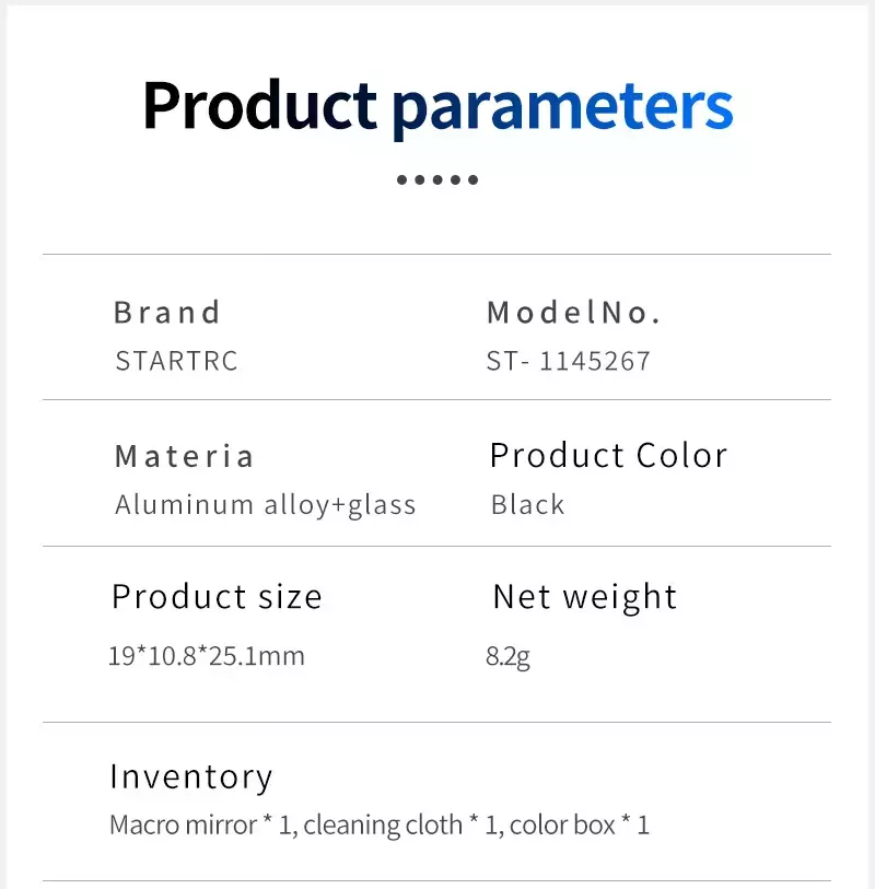 Lista do pacote: Lente macro * 1, limpando o pano * 1