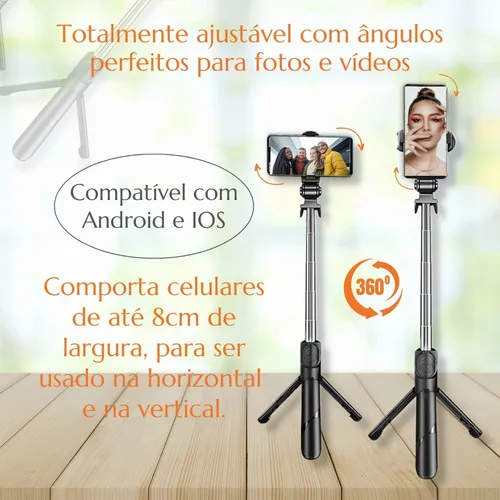 É compatível com Android e IOS (apenas para aparelhos Android configure a função tecla de volume como captura na configuração do aplicativo da câmera para que o bastão de selfie funcione corretamente).